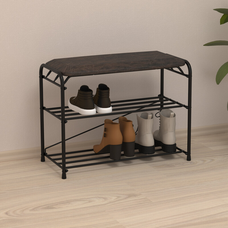 Подставка для обуви Альфа-23 С СИДЕНЬЕМ 3-х полочная Черный (650х300х480) ЗМИ (ПДОА23С Ч)