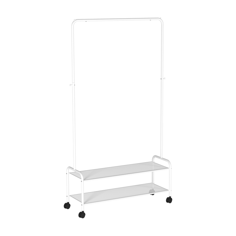 Вешалка ГАРДЕРОБНАЯ "Валенсия 32М" с двумя полками, на колёсах 91,5х30х162 см (Белый) ВГВ32М Б (ЗМИ)