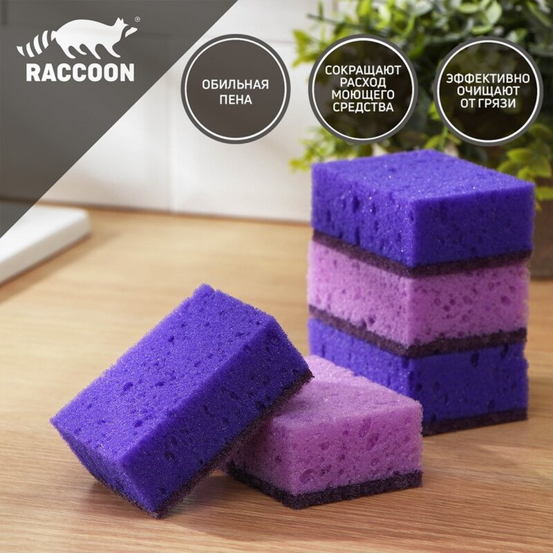 Raccoon. Губка для мытья посуды "Версаль" 5 шт, 90*65*35 крупнопористый поролон 7444205