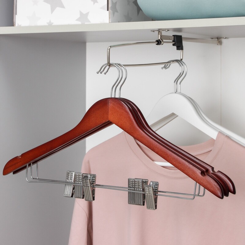 Доляна. Набор вешалок с зажимами 3 шт, размер 44,5х23 см, дерево вишня, сорт В 7162572