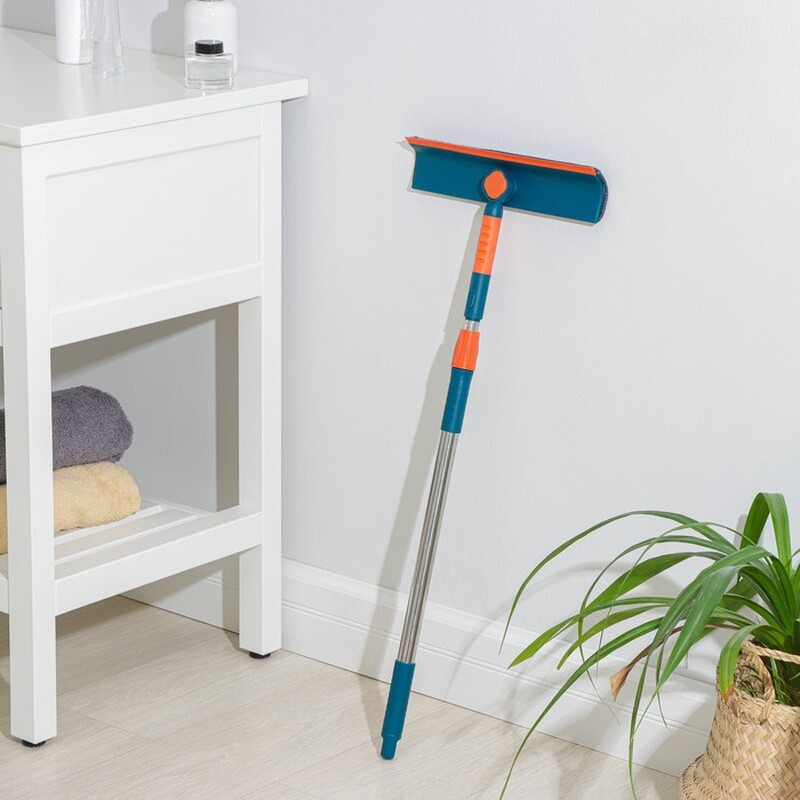 Доляна. Окномойка с насадкой велюр, стальная телескоп ручка, фиксатор, сгон силикон 18х8х55(83) см 3092593