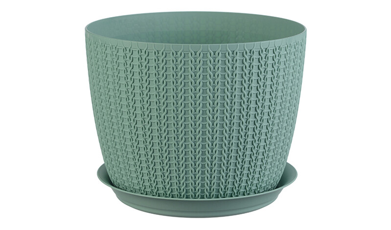 IDEA. Кашпо ВЯЗАНИЕ D180мм 2,8л. с поддоном Фисташковый ("М-пластика") (М 3121)