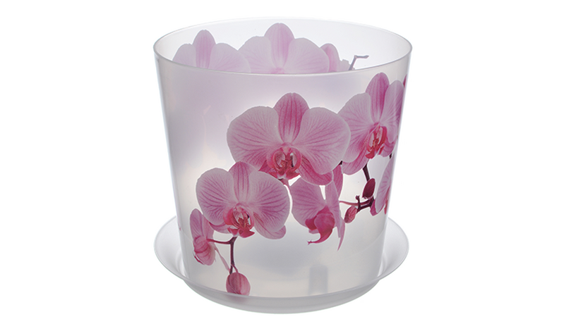 IDEA. Кашпо ДЕКО Орхидея цв.микс D160мм 2,4л с поддоном прозрач.("М-пластика") (М 3106)