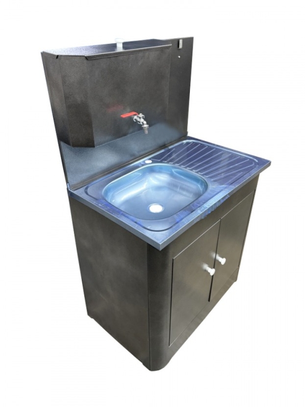 БЕЗ БРЕНДА. Умывальник 2-х дверный с ЭВН (тумба, нерж. мойка 50*80,V-бака 17л.) 1,25кВт серебро, кран силумин