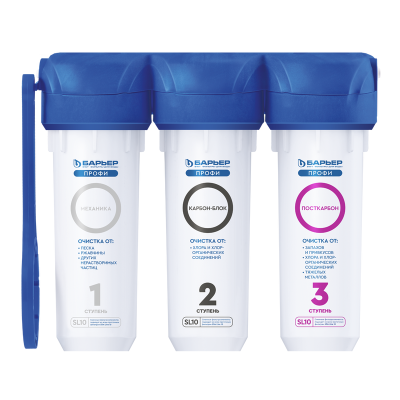 В комплекте: кран, картридж Профи Механика 5 мкм, картридж Профи Карбон-блок, картридж Профи ПостКарбон
