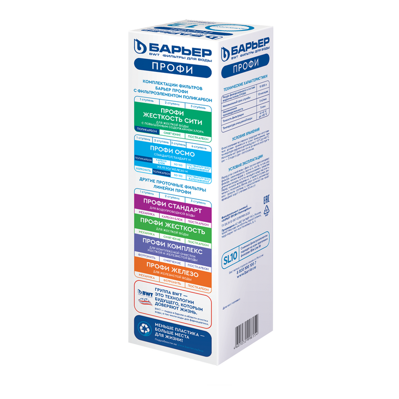 Сменный картридж для фильтров семейства ПРОФИ. Совместим со всеми фильтрами стандарта sl10. Сочетает в себе функцию механической и сорбционной очистки. Удаляет хлор и органические соединения. Ресурс 10 000 литров.