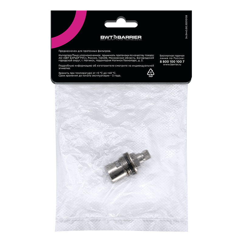 Кран-букса - один из главных элементов крана чистой воды. Она отвечает за регулирование напора и подачу/перекрытие воды. Основным материалом является латунь, что дает большую износостойкость. Запирающей деталью служат две тщательно отполированные керамические пластины. Герметичность кран-буксы обеспечивает упорное уплотнительное кольцо.
