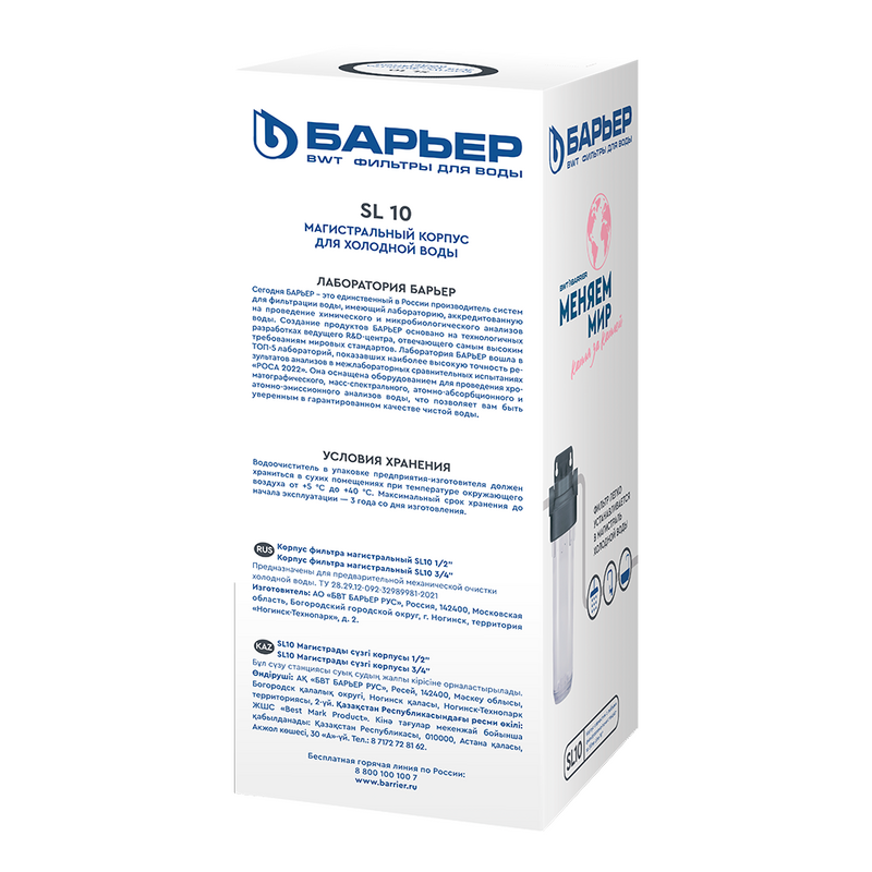 К данному корпусу подходят любые сменные картриджи/фильтроэлементы БАРЬЕР стандарта SL10 для холодной воды.