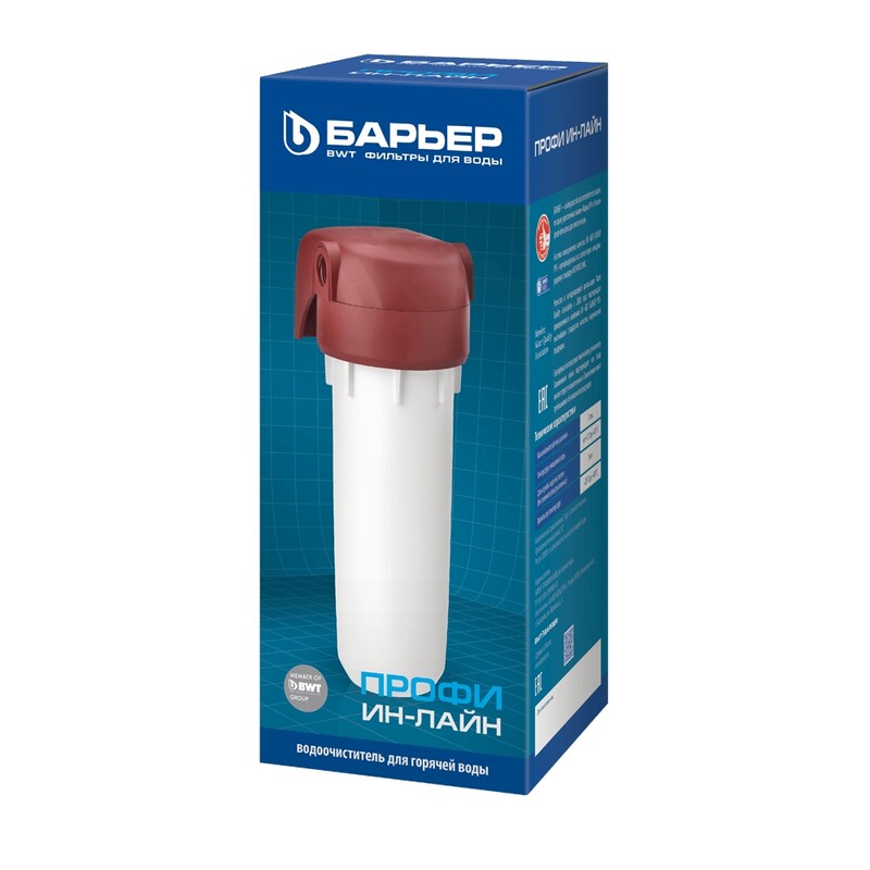 Фильтр магистральный Барьер ПРОФИ ИН-ЛАЙН Slim Line 10 вход 1/2 для горячей воды (без картриджа) Н104Р00 СНЯТО
