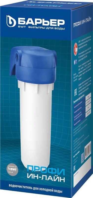 Фильтр магистральный Барьер ПРОФИ ИН-ЛАЙН Slim Line 10 вход 1/2 для холодной воды (без картриджа) Н103Р00 СНЯТО