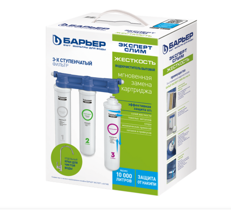 Фильтр проточный Барьер ЭКСПЕРТ СЛИМ Жесткость, 3 ступени (в комплекте: кран) Н821Р00