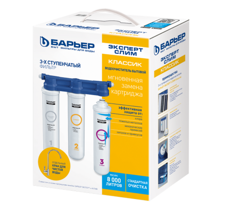 Фильтр проточный Барьер ЭКСПЕРТ СЛИМ Классик, 3 ступени (в комплекте: кран) Н851Р00