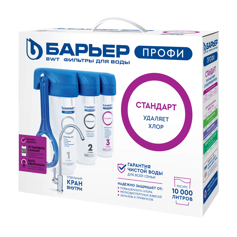 Фильтр проточный Барьер ПРОФИ Slim Line 10 Стандарт, 3 ступени, Лайт (в комплекте: кран) Н113Р00