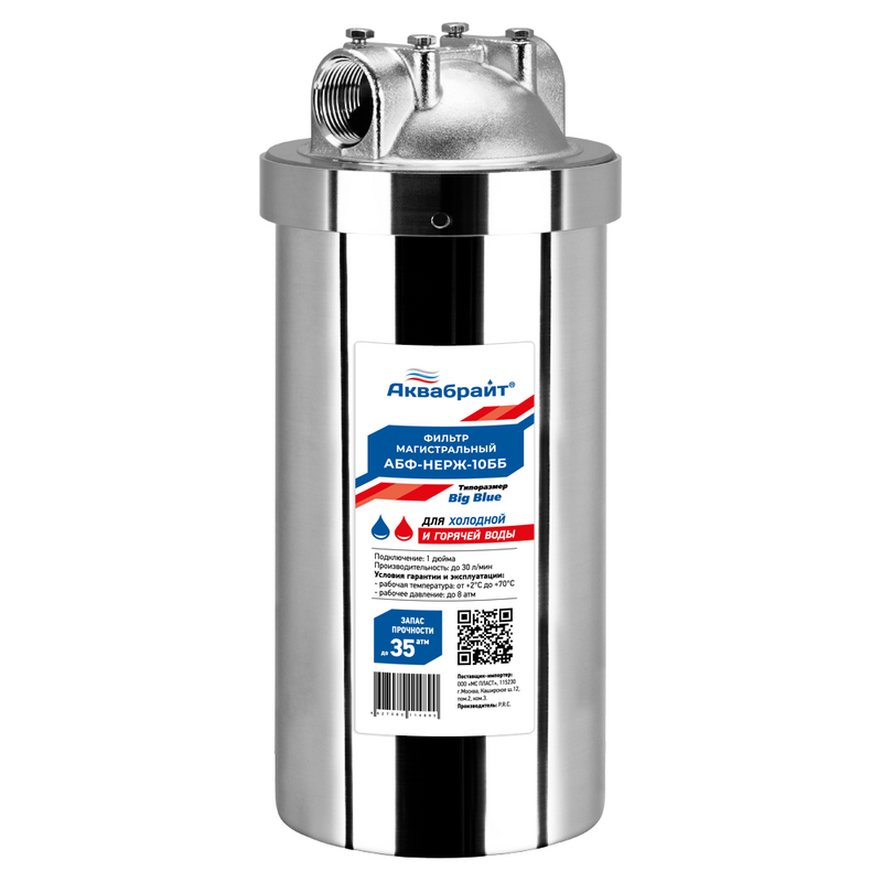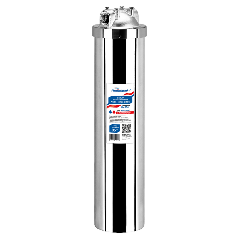 Фильтр магистральный Аквабрайт Big Blue 20 для горячей воды Нержавейка 1 (без картриджа) АБФ-НЕРЖ-20ББ*