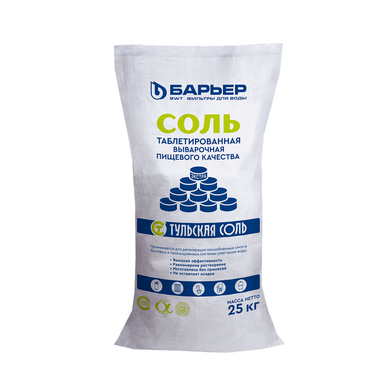 Барьер. Соль поваренная экстра выварочная таблетированная универсальная, мешок 25кг Р704Р01
